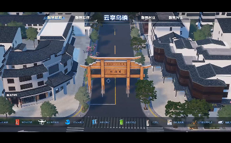 通过三维可视化智慧治理平台构建,将二维平面展示迭代至三维立体呈现,一张图实现物联设备监测、数据分析展示、知识图谱管理、解决方案优化,有效整合乌镇现有智慧应用和数据资源。